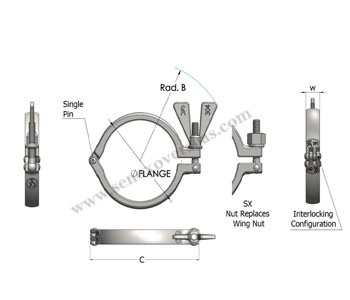 | NOMINAL CLAMP SIZE | LENGTH C (MM) | FLANGE Ø (MM) | RAD. B (MM) | WIDTH W (MM) | MASS (KG) |